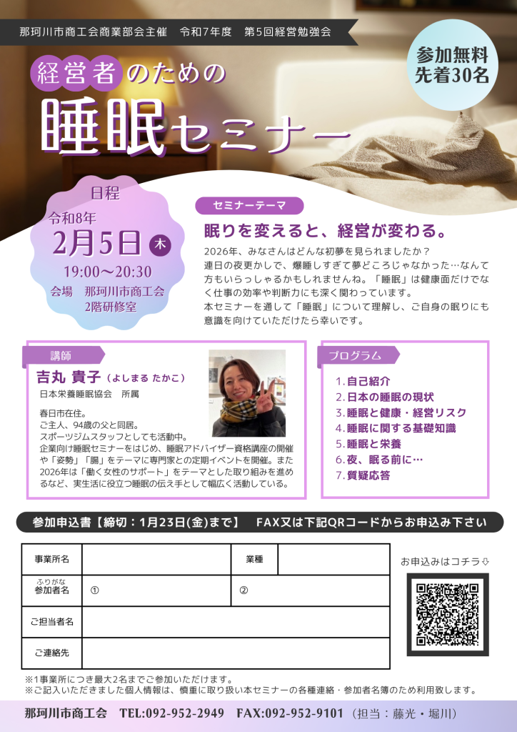 経営者のための睡眠セミナー(商業部会主催)開催のご案内